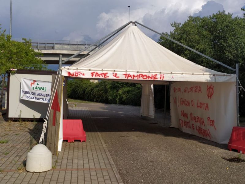 - Scritte no vax al gazebo dei tamponi di Empoli