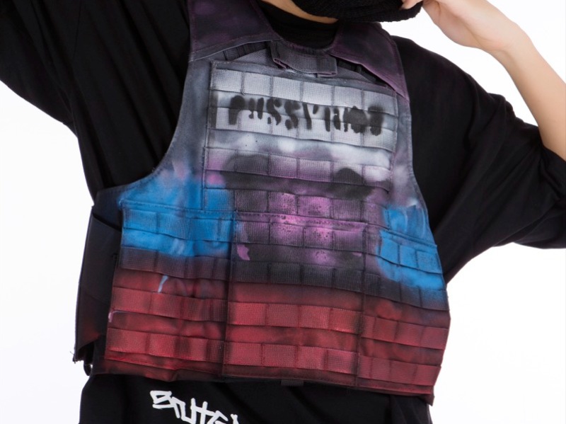 “Counterculture Bodies” è una collezione dagli accenti street e di forte impatto visivo, che richiama l’immaginario underground, il cinema, l’arte contemporanea e i graffiti. Abiti e accessori sono stati progettati e realizzati a mano personalmente da Salvetti durante l’ultimo anno del corso di studi. La capsule gioca su tessuti grezzi, contrasti tattili e visivi, arricchiti da stampe e disegni realizzati a mano con bombolette spray, con una tecnica non lontana da quella usata dai writers. Il mondo digitale del gaming si intreccia alle citazioni cinematografiche, in un connubio tra tecnologia e design.