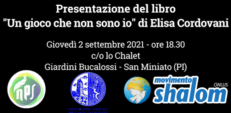 Le associazioni “Nati per scrivere” e “Movimento Shalom” e la Proloco di San Miniato organizzano, per il 2 settembre 2021, presso lo Chalet a San Miniato, un aperitivo letterario con la scrittrice Elisa Cordovani, che presenterà “Un gioco che non sono io”, silloge poetica illustrata da Alice Walczer Baldinazzo (NPS Edizioni). Il libro rappresenta un originale connubio artistico per combattere la violenza di genere, tematica attuale nella nostra società”, un progetto congiunto dell’associazione Nati per scrivere e del Magazine L’Ordinario.