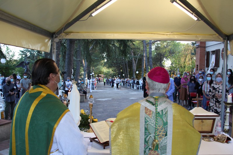 Così il Vescovo Gastone ha salutato il Cardinale ed i presenti: "Ringrazio Dio fratelli e sorelle, per trovarmi qui ancora una volta, a San Donato a Livizzano, in questo luogo santificato, santo e santificante, siamo accorsi e siete accorsi numerosi, desiderosi di essere aiutati a vivere coerentemente con la vostra fede. In questo luogo, un Santo Prete Don Mario Boretti, che voi venerate giustamente, ha costruito dal nulla un luogo di fede, gremito ora di tante persone provenienti da varie parti alla ricerca di Dio, della Sua grazia, della Sua carità, della sicurezza che viene da lui per impetrare grazie su grazie.”