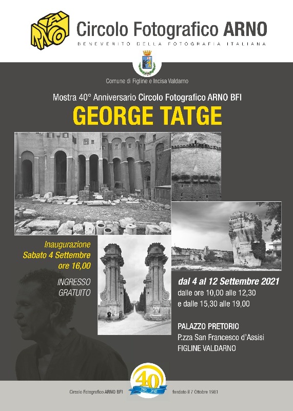 Una sede completamente rinnovata, la mostra di un autore internazionale e una raccolta di 150 opere di grandi fotografi contemporanei: i festeggiamenti per i 40 anni di attività del Circolo fotografico Arno proseguono sabato 4 settembre, in coincidenza con l’inizio delle Feste del Perdono di Figline, con l’inaugurazione (alle 16) della mostra di George Tatge, uno dei più riconoscibili innovatori della fotografia paesaggistica e architettonica che ha dedicato buona parte della sua carriera al racconto per immagini dell’Italia. Circa 50 gli scatti in mostra al Palazzo Pretorio di Figline fino al 12 settembre. Lo stesso 4 settembre, alle 11, è in programma anche il taglio del nastro per i locali del Circolo, in via Roma 2, appena ristrutturati grazie ad un investimento di 15mila euro da parte del Comune. Nel dettaglio, gli interventi sono serviti ad abbattere le barriere architettoniche (e a rendere quindi gli spazi più accessibili, anche ai disabili), a riqualificare e risistemare gli spazi esterni e interni, ad imbiancare tutte le sale e a dotare la sede di fibra ottica, con appositi interventi a cura dell’ufficio Lavori pubblici comunale.