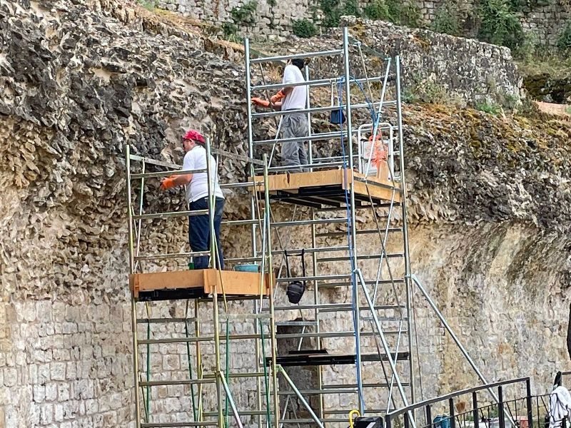 La chiusura delle fessurazioni tra la malta e il materiale lapideo e tra le pietre stesse prevederà l’impiego di iniezioni con calce idraulica fluida (PLM). La rimozione della vegetazione verrà realizzata con iniezioni e spruzzi a base di idrazide maleica e acido pelargonico.