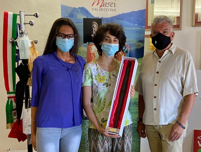 Per lei un giro turistico della città e il dono della statua che rappresenta il colle etrusco nel mondo: l’Ombra della sera.