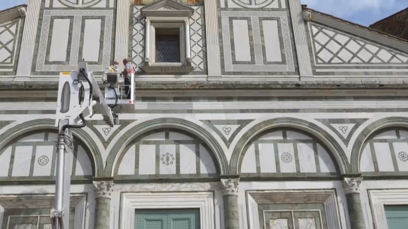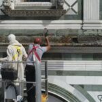 “Dopo aver fatto un’indagine conoscitiva di tutto il tetto per poi andare a lavorare in maniera puntiforme sui canali, sulle gronde ma anche sui marmi della facciata, dove c’erano problemi di crescita di erbe. – spiega Fabio Braccianti, architetto e socio RC Firenze Lorenzo il Magnifico – Ho lavorato con un piano di sicurezza in modo da poter intervenire anche in presenza, oltre che degli operai dell’impresa, anche dei turisti, dei monaci che circolavano nella piazza. Un’opera propedeutica in modo che in futuro non ci siano problemi legati a bagnamenti o percolazioni interne”