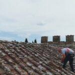 La Ditta edile incaricata e’ stata la Combaj Pllumb di Terranuova Bracciolini (Arezzo), essa ha operato con estrema perizia e con mezzi speciali per i lavori in quota, ovvero: autogru con sistema di elavatore di cestello per 2 uomini (asportando con precisione la grande quantita’ di elementi invasivi). Si ricorda che in fase iniziale e’ stato effettuato un sopralluogo con ampio rilievo fotografico d’indagine su tutta la copertura con l’ausilio di un drone ( per individuare esattamente le zone dove operare).