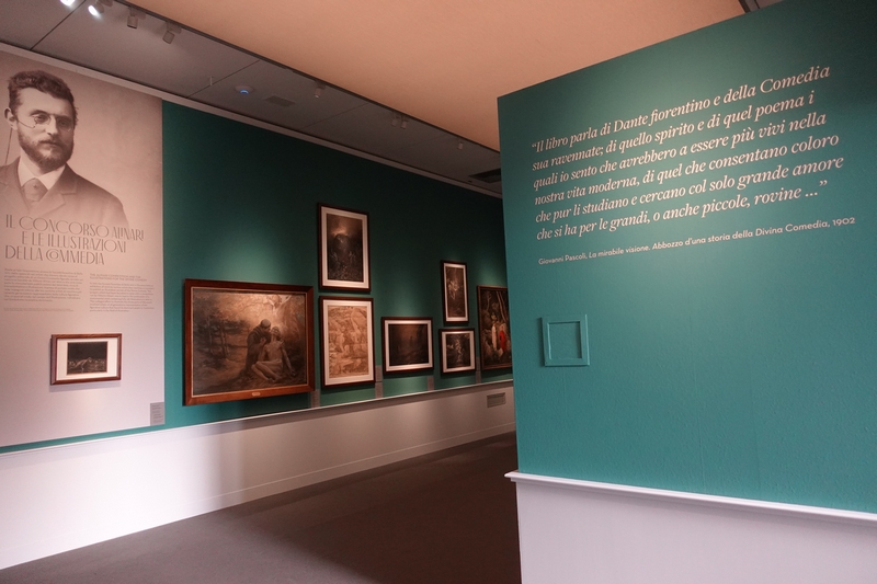L’esposizione che nel titolo, La mirabile visione, rimanda agli studi danteschi di Giovanni Pascoli, è articolata in varie sezioni, rispettivamente dedicate alla scoperta del più antico ritratto di Dante, opera di Giotto, nella cappella del Bargello (1840), alle suggestioni della Vita Nova nella seconda metà dell’Ottocento, ai grandi e tragici personaggi della Commedia rappresentati nell’ambito artistico internazionale, alle opere presentate al Concorso Alinari del 1901 e alle illustrazioni più affini alla sensibilità simbolista, ma anche alla risonanza della Commedia nella produzione letteraria di Giovanni Pascoli e Gabriele d’Annunzio.