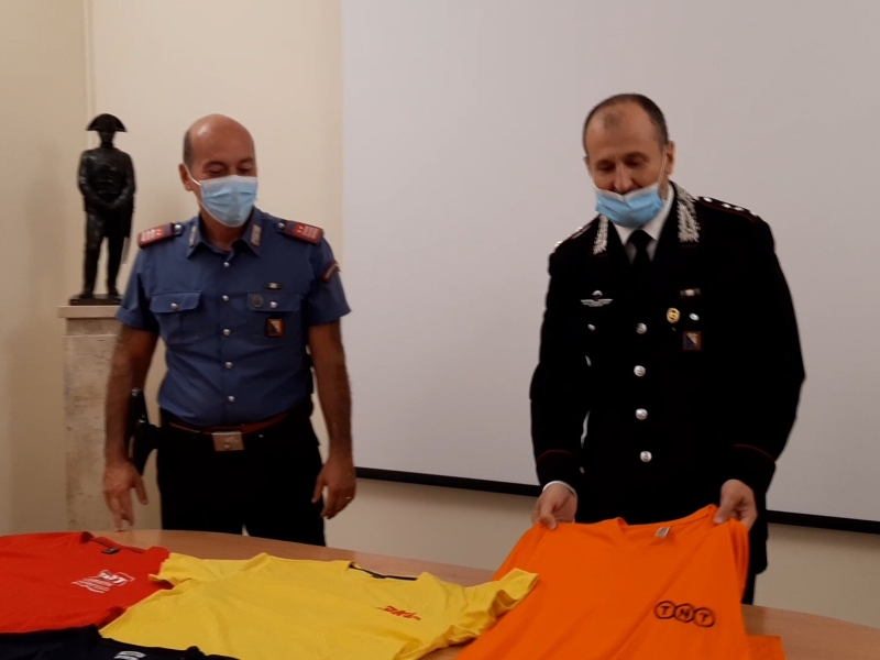 Durante la perquisizione successiva è stato scoperto che il quarantenne aveva ben 6 magliette con loghi, scritte e colori corrispondenti ad altrettante importanti aziende di spedizioni italiane e internazionali che utilizzava per sostituirsi in maniera sistematica ai corrieri delle diverse aziende.