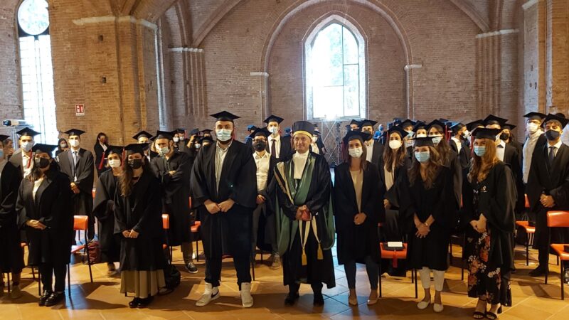 “Oggi ci sono diversi motivi per essere soddisfatti – ha detto il rettore Francesco Frati aprendo la cerimonia e salutando gli 82 dottori di ricerca presenti: il primo è che questa quarta edizione del PhD Graduation Day rappresenta il primo evento interamente nostro che viene organizzato dall’inizio della pandemia. Siamo consapevoli che questa giornata non ne rappresenta ancora il segnale di uscita, ma è un passo in avanti verso quella tranquillità che tutti desideriamo e forse una piccola finestra che si apre sul futuro. Accanto, l’altra piccola finestra sul futuro rappresentata dalle lezioni del nuovo anno accademico che proprio in questi giorni vedono rientrare nelle nostre sedi – e nella nostra città - tanti studenti e studentesse. Desiderosi di riassaporare quelle sensazioni di socialità e condivisione del percorso di formazione che caratterizzano l’esperienza universitaria”.