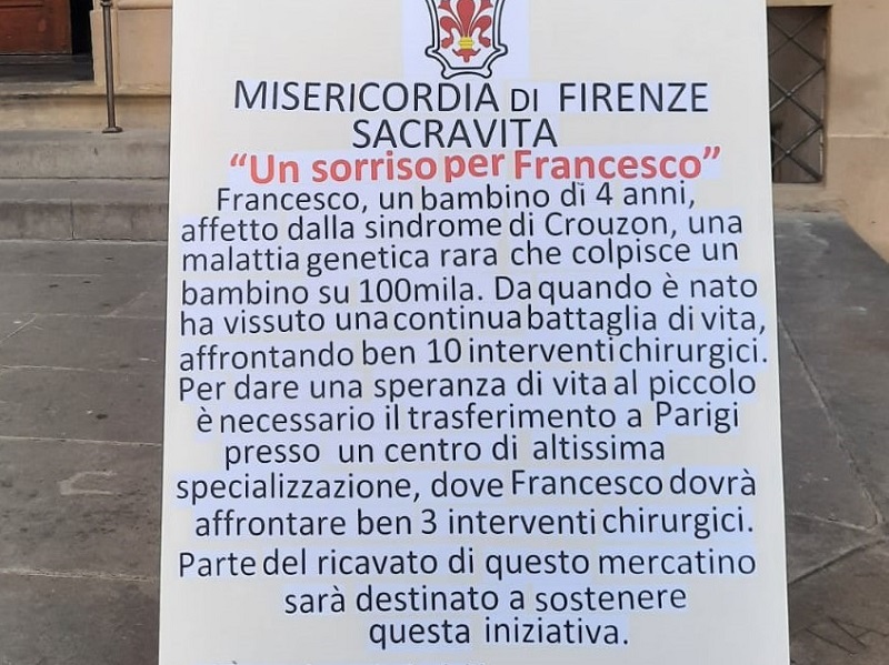 Parte del ricavato del mercatino, interamente gestito da volontari, sarà devoluto all’iniziativa promossa dalla Misericordia di Antella in favore di Francesco, bambino antellese di 4 anni affetto da un grave malattia.