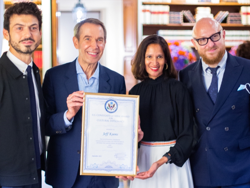 La pandemia ha ridimensionato la presenza americana in Italia e ha reso più difficile il fiorire dei legami quotidiani e degli scambi culturali tra i nostri paesi. L’assenza di residenti temporanei, turisti e studenti americani e la conseguente mancanza del loro contributo alla vita culturale di questa regione, è stata profondamente sentita durante la pandemia. Per questo la Console Generale Ragini Gupta inaugura quest’anno un nuovo premio – il Premio del Consolato Generale degli Stati Uniti per la Diplomazia Culturale – che esalta coloro che in questo ambito si sono rivelati d’esempio. Jeff Koons sarà fra i primi destinatari del premio. In un momento di “rinascita”, in attesa di nuovi inizi, ci preme ringraziare e onorare coloro che hanno contribuito così tanto a rafforzare negli anni il legame tra Stati Uniti e Italia.