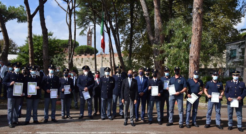 Inoltre il Questore ha consegnato 8 compiacimenti scritti e 10 premi in denaro, dal medesimo concessi al personale meritevole in operazioni di servizio; ha alfine consegnato 8 medaglie di commiato rilasciate dal Sig. Capo della Polizia "con gratitudine" al personale posto in quiescenza.