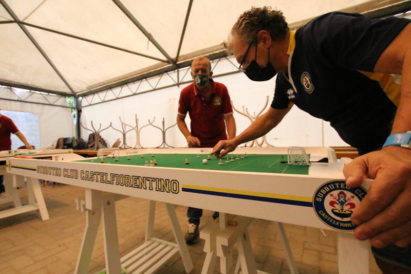 Schierati intorno ai 4 tavoli da Subbuteo, 4 giocatori per ogni squadra. Per i gialloblu del Subbuteo Club Castelfiorentino sono scesi in campo Vincenzo Santaniello, Giuseppe Zaccardo, Fabio Pasquini e il presidente Nicola Dragoni. Dal Subbuteo Club Labronico la formazione ha visto giocare Daniele Venturini, Massimo Matteucci, Alessio Nardi e Giovanni Marconcini, quest’ultimo del Club Calcio in miniatura Livorno. Presente anche l’assessore allo sport del Comune di Castelfiorentino Simone Bruchi: questa giornata "è sintomo di ripartenza per tutte le attività sportive, siamo contenti e speriamo di non fermarci più". Riguardo alla partita di domani, Bruchi continua: "Si tratta di una sfida importantissima, incontriamo una squadra che non è avvezza a queste categorie, ha già un organico per puntare ad altri obiettivi. Sicuramente metteremo in campo tutta la nostra forza e grinta, e che vinca il migliore".