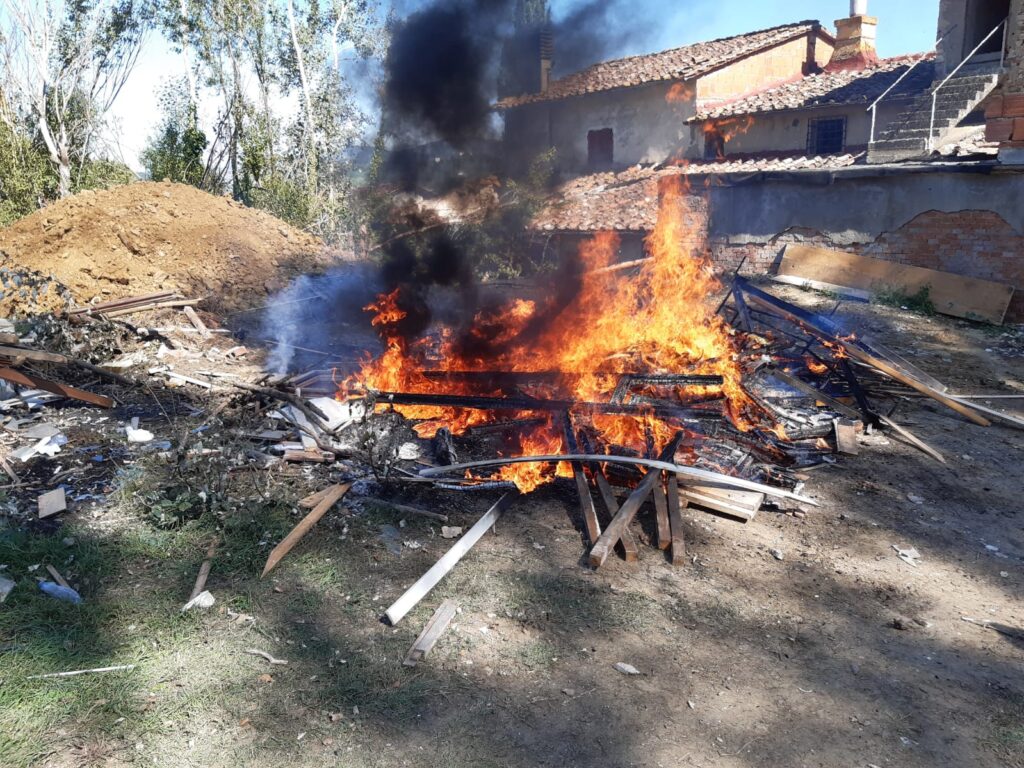 Stavano bruciando infissi, parquet e altro materiale all'interno di un terreno privato, vicino a una casa in ristrutturazione. Inoltre erano presenti rifiuti misti da demolizione, metalli, materiali ingombranti domestici. Il tutto era a lato di un edificio in cui erano in corso dei lavori.