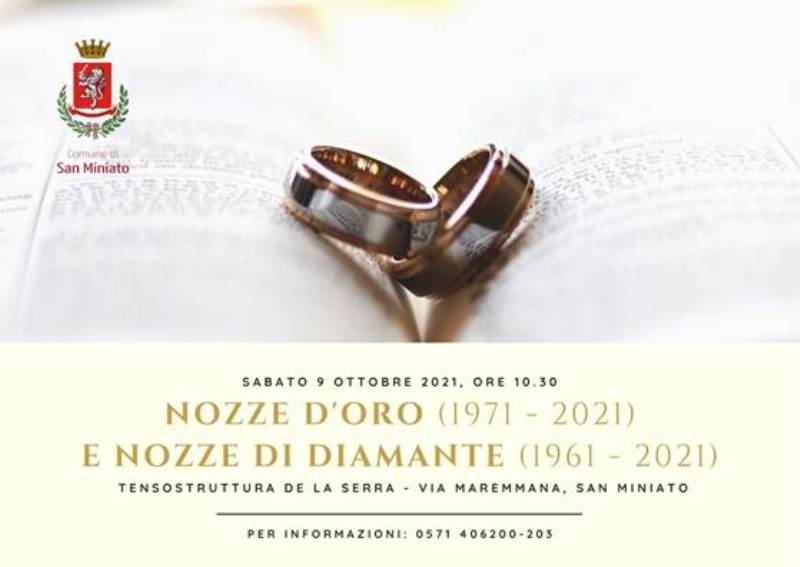 Sono 163 le coppie di San Miniato a festeggiare, nel 2020, 50, 60 e 70 anni di vita insieme, un anniversario che l'amministrazione comunale celebrerà, per l'ottavo anno consecutivo, con un momento di festa sabato 9 ottobre, a partire dalle 10.30, alla tensostruttura de La Serra.