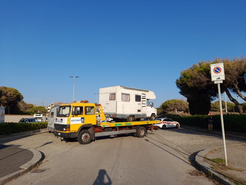 È stato anche rimosso un camper privo di assicurazione che si trovava in piazzetta Borrani, sul lungomare di Antignano.