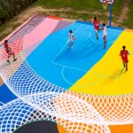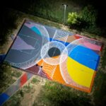 Moneyless, tra i principali protagonisti della scena internazionale dell’arte urbana astrattista, ha completato l’ultima fase con un dipinto di oltre 1000 mq che abbraccia l’intera area: il playground, i vialetti del parco e la cabina elettrica situata all’ingresso. Si tratta della più grande opera di arte urbana di tutta la Toscana.