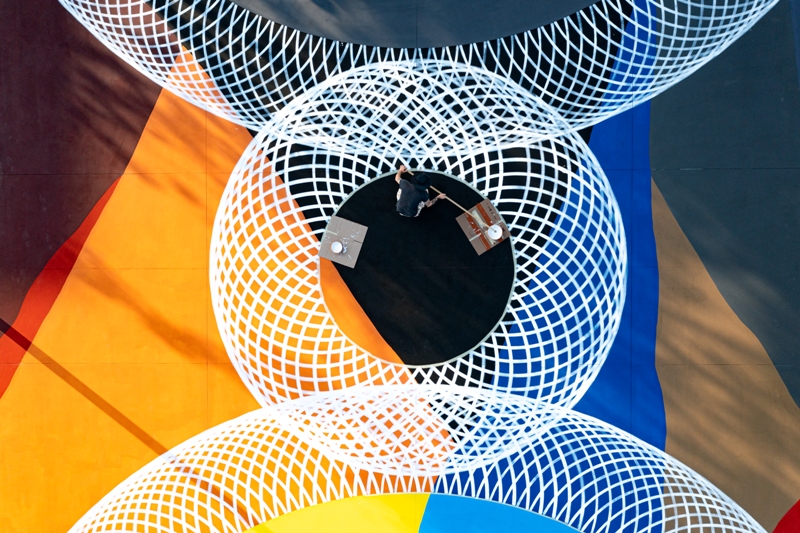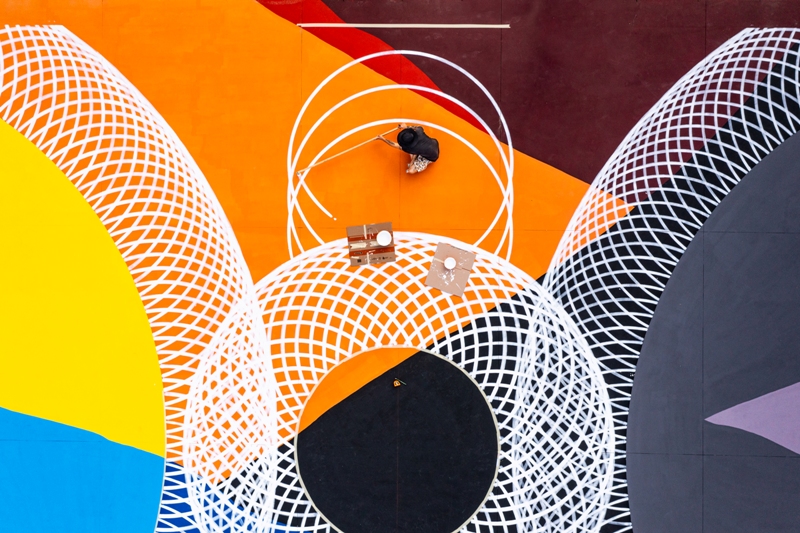 "Per me è normale fare opere di queste dimensioni, ma è la prima volta che le realizzo a terra- sottolinea Teo Pirisi in arte Moneyless - È stato un modo mettermi alla prova su un qualcosa che avevo in magazzino a livello progettuale da tanto tempo. Con la mia arte cerco di portare un'estetica all'interno dei quartieri per renderli più belli; lo faccio attraverso la semplicità della geometria e del colore: come rivela il mio stesso pseudonimo, la povertà nell’essenzialità di una forma è per me una vera ricchezza, rappresenta il silenzio che fa riaffiorare il pensiero".