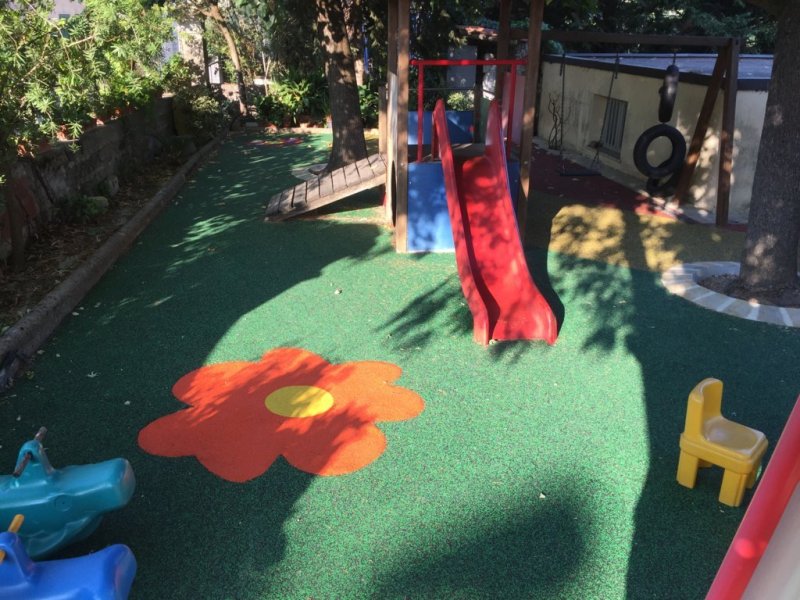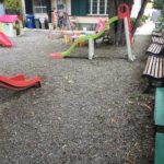 In particolare, la corte esterna di cui la struttura dispone è stata oggetto di un intervento di manutenzione straordinaria che ne ha aumentato la funzionalità e il decoro, e si articola ora in due zone distinte, una delle quali adibita ad area gioco con scivoli, castelli ed altalene che è stata messa in sicurezza grazie alla posa di una pavimentazione di tipo anti-trauma, realizzata da una ditta specializzata del settore seguendo il progetto del Geometra Marco Barsotti.