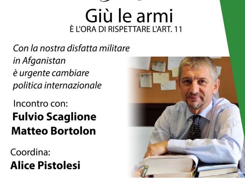 Il Comitato per difesa della Costituzione dell’Empolese Valdelsa organizza per sabato 9 ottobre una iniziativa dal titolo “Giù le armi! E’ l’ora di rispettare l’art. 11”. L’incontro si terrà a partire dalle 17,30 al Circolo Arci di Santa Maria, via Livornese n. 48 Empoli.