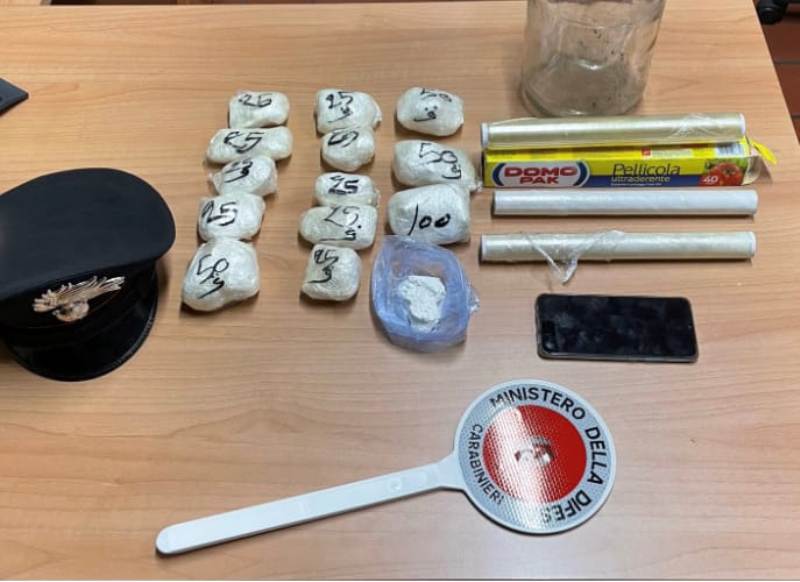 Durante un normale controllo in strada, l'uomo si è prima accovacciato dietro uno scooter e poi ha tentato la fuga a piedi, fuga invana visto che è stato bloccato dai carabinieri.