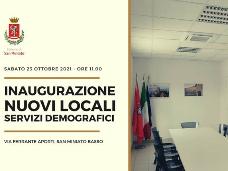 Tutto pronto per l'inaugurazione dei nuovi locali destinati ai Servizi demografici del Comune di San Miniato, prevista per sabato 23 ottobre, alle ore 11.00, alla presenza del sindaco di San Miniato Simone Giglioli e di Daniela Mori presidente del Consiglio di Sorveglianza di Unicoop Firenze. Una sede completamente rinnovata, ubicata a San Miniato Basso (in via Aporti 23/A), nei locali dell'ex Coop, dove sono stati trasferiti e ricollocati tutti gli uffici che si trovavano in via dei Beccai. Gli spazi, di proprietà di UniCoop Firenze, grazie ad un contratto di comodato d'uso gratuito a tempo indeterminato, sono stati dati in gestione al Comune che ha così ricollocato tutti servizi demografici (anagrafe, stato civile ed elettorale), all'interno di uno spazio complessivo di ben 492 metri quadrati, suddiviso su due livelli, per il quale dovrà pagare solo alcune spese condominiali annue.