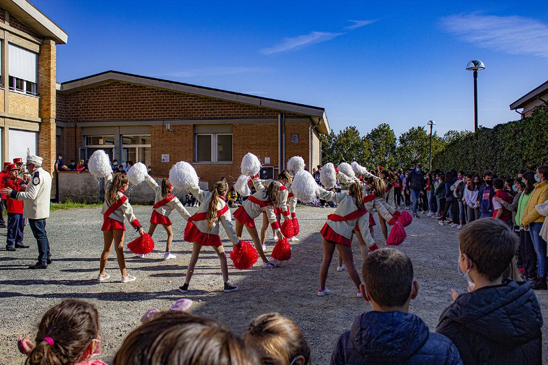 Un'ora e mezzo di festa che ha coinvolto sia i ragazzi della secondaria che i bambini della primaria, che, trascinati dalle melodie e dalle coreografie delle majorettes, si sono messi a ballare e ad accompagnare le musiche con il battito delle mani.