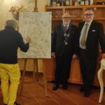 Sotto gli occhi attenti e vigili dei Soci e degli ospiti dei due Club, il Maestro ha realizzato un’opera che è stata poi oggetto di una lotteria il cui ricavato è stato donato quale integrazione al service per la realizzazione del monumento cittadino “al donatore”.