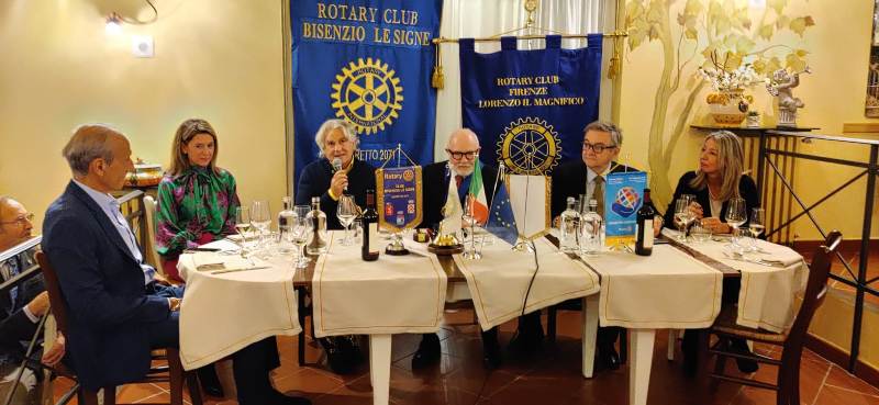 Il Presidente del RC Lorenzo il Magnifico, Carlo Steinhauslin, e quello del RC Bisenzio Le Signe, Giancarlo Torracchi, hanno salutato con grande gioia la partecipazione di Antonio Manzi alla serata ricordando che il Maestro, nella sua lunga carriera artistica, ha in più occasioni partecipato ad eventi organizzati dal Rotary lasciando una testimonianza delle sue creazioni artistiche.