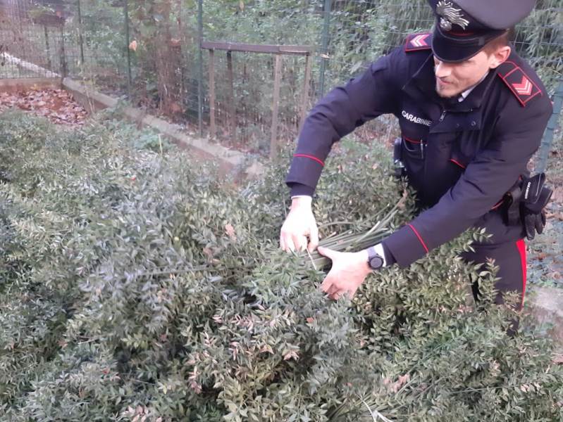 I Carabinieri giunti sul posto si addentravano nella boscaglia, individuando e bloccando proprio tre soggetti intenti a falciare gli arbusti della pianta denominata “Ruscus aculeatus” nota anche come “Pungitopo Selvatico”, pianta protetta ed usata effettivamente e prevalentemente per gli addobbi natalizi.