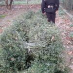 Dalla successiva ispezione dei luoghi venivano rinvenuti anche i guanti e le roncole utilizzate per tagliare le piante, nonché altre piante raccolte a fasci e legati con della corda in nylon e posti a ridosso della strada sterrata, pronti per essere caricati probabilmente sullo stesso furgone che aveva condotto i rei sul posto poche ore prima.