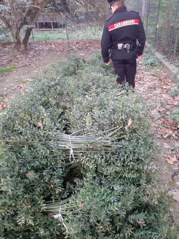 I Carabinieri giunti sul posto si addentravano nella boscaglia, individuando e bloccando proprio tre soggetti intenti a falciare gli arbusti della pianta denominata “Ruscus aculeatus” nota anche come “Pungitopo Selvatico”, pianta protetta ed usata effettivamente e prevalentemente per gli addobbi natalizi.