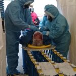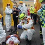 Qui entrano in gioco i sanitari, con maschere, respiratori e le necessarie misure di protezione, per attivare i processi di decontaminazione attraverso l’utilizzo dell’acqua. Solo a questo punto le vittime dell’incidente possono essere consegnate ad altro personale sanitario, a questo punto nella zona gialla, per l’avvio dei trattamenti necessari nel Punto medico avanzato.