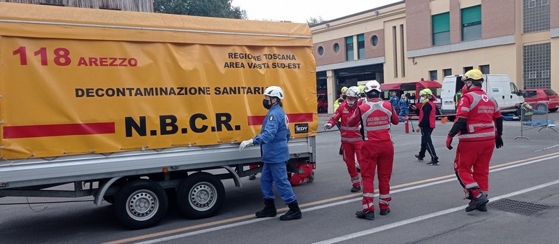 Si è svolta questa mattina, nel piazzale del comando provinciale dei Vigili del Fuoco di Siena che ospita anche la Centrale 118 Siena-Grosseto, l’esercitazione tecnica congiunta Nbcr (Nucleare, biologico, chimico, radiologico) per “incidente stradale con trasporto sostanze pericolose”. I Vigili del Fuoco 115, il gruppo delle maxi emergenze del dipartimento 118 dell’Asl Toscana sud est, diretto da Massimo Mandò, e le associazioni di volontariato hanno promosso l’esercitazione per testare un intervento in condizioni particolarmente critiche.
