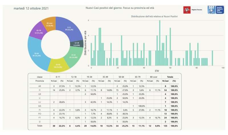 Si ricorda che tutti i dati saranno visibili dalle ore 18.30 sul sito dell'Agenzia Regionale di Sanità a questo indirizzo: www.ars.toscana.it/covid19