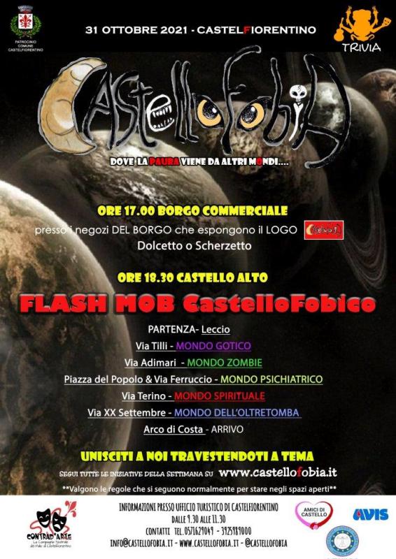 CastelloFobia è organizzata da Trivia Aps (patrocinio del Comune di Castelfiorentino) in collaborazione con Contrad’Arte, Amici di Castello, Prociv Arci, AVIS.
