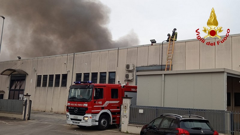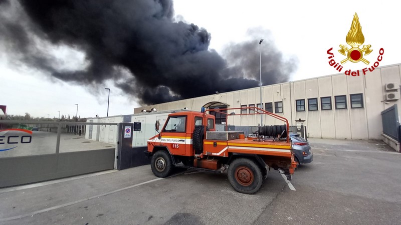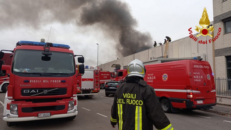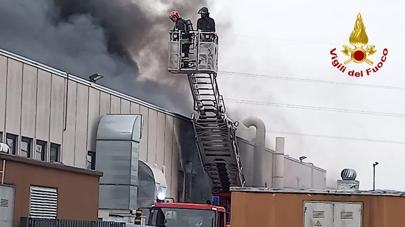 Le operazioni di soccorso e spegnimento sono ancora in corso, anche perché il vento le rende più difficoltose, e la colonna di fumo nero che si leva dall'azienda è visibile in gran parte della città.