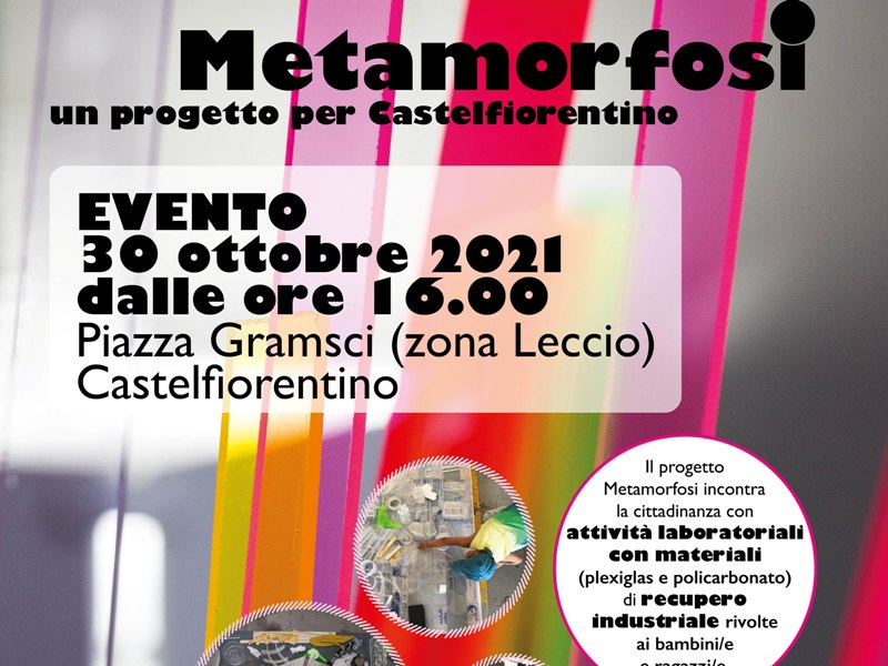 L’arte che incontra lo scarto industriale, sul terreno dell’economia circolare: contribuendo a stimolare curiosità, interesse e soprattutto una rinnovata sensibilità ambientale in bambini e adulti. E’ uno degli obiettivi del progetto “Metamorfosi”, frutto della collaborazione tra il Comune, l’associazione Cetra e l’Atelier dell’artista Davide Dall’Osso, che sarà illustrato alla cittadinanza nel corso di un evento aperto a tutti, in programma sabato 30 ottobre 2021, dalle ore 16.00, in Piazza Gramsci (zona “Leccio”, di fronte al Ridotto del Teatro del Popolo).