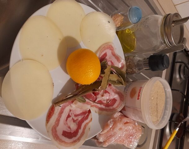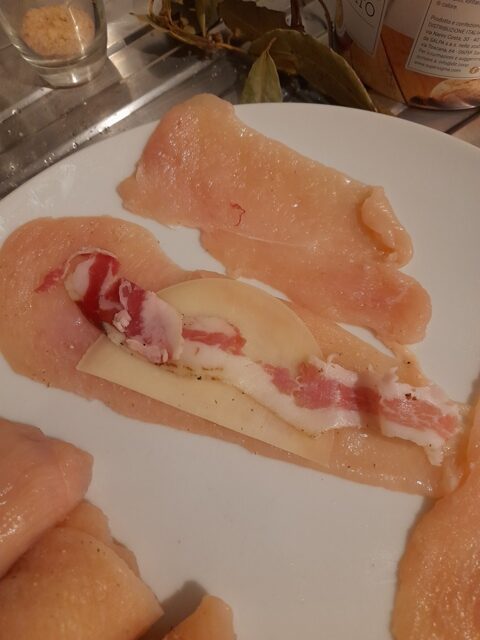 Ieri pomeriggio l'ho vista e così sono andata subito a comprare degli ingredienti che mi mancavano e io e mio marito abbiamo cenato con gli involtini di pollo con scamorza e pancetta.