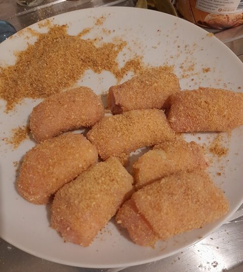 Anche per la panatura potete utilizzare aglio e prezzemolo tritato e semi di sesamo o altre spezie e semi.