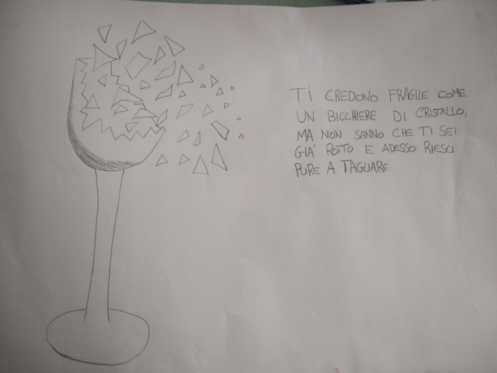 “In classe abbiamo parlato a lungo della fragilità che può essere trasformata in una grande forza, così i miei ragazzi hanno prodotto e realizzato foto, elaborati grafici e video sull’argomento dando il meglio di loro stessi”. Questo il commento della prof. Torrini.