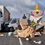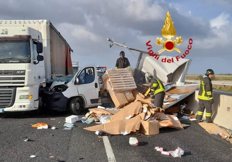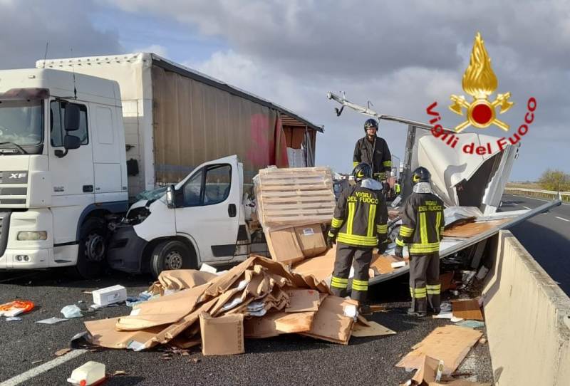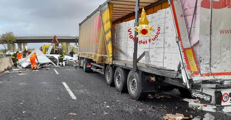 I conducenti del furgone e del tir tendonato sono riusciti a uscire da soli dai mezzi. Oltre al carico perso si segnala anche lo sversamento del carburante in corsia.