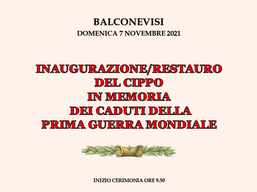 Domenica 7 novembre si terrà l'inaugurazione, alle 9.30. Oltre alla presenza della fanfara dei bersaglieri, si terrà la deposizione della corona e la benedizione della lapide alla chiesa dei santi Pietro e Paolo.