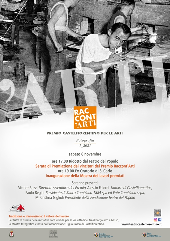 Sabato 6 Novembre alle ore 17 presso il Ridotto del Teatro del Popolo avranno luogo le premiazioni degli elaborati del concorso dedicato alla fotografia sul tema “Uno sguardo sul lavoro”.