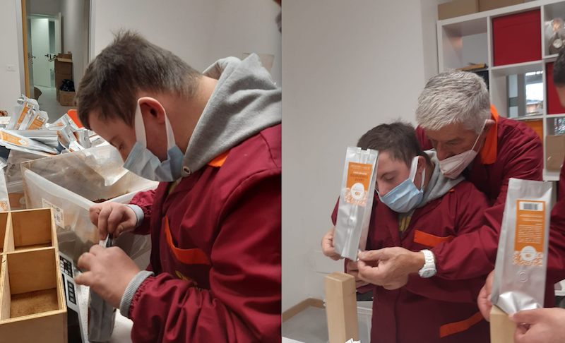 Otherwise Diversamente Caffè ha iniziato stamattina nel suo laboratorio di Piazzetta delle Stoviglie 3 a Empoli uno stage con 2 ragazzi dell'istituto di istruzione superiore Enrico Fermi-Leonardo da Vinci. I 2 ragazzi, Thomas Bertelli e Andrea Morelli, sono stati accompagnati dalla Professoressa Ilaria Lorenzini e dalla Educatrice Elisabetta Fanti. Giulia Lisi, 'padrona di casa', ha fatto da istruttrice.