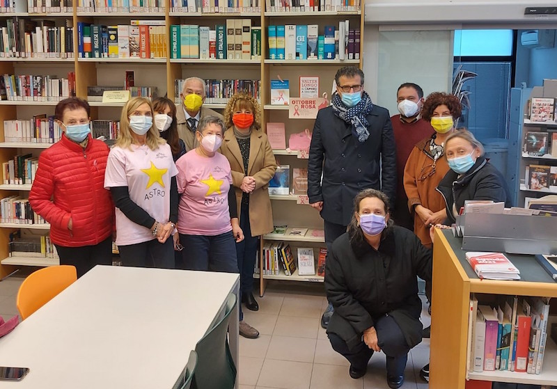 Alla presentazione del nuovo scaffale di libri della Biblioteca erano presenti oltre al vicesindaco Sara Iallorenzi, anche il sindaco Giuseppe Torchia, l'assessore al Sociale Chiara Ciattini, l'assessore alle Politiche giovanili Mila Chini e Paolo Scardigli, presidente di A.S.T.R.O, l'associazione per il Sostegno Terapeutico e Riabilitativo in Oncologia onlus, insieme a una delegazione di donne dell'associazione. Paolo Scardigli ha donato alla Biblioteca civica il libro “L'oro del kintsugi- Diario di bordo di una sconfitta e di una rinascita” di Eleonora Viviani (ed. Carmignani), che è entrato a far parte della collezione rosa.