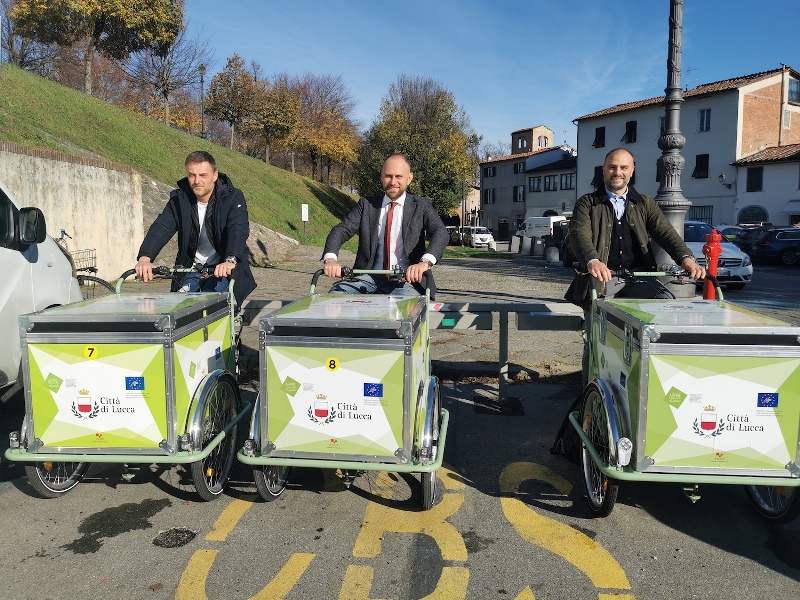 Le cargo bike del progetto Life Aspire attive in centro storico con l’obiettivo di razionalizzare e rendere sostenibile il trasporto cittadino delle merci, da oggi, giovedì 18 novembre, saranno a disposizione di tutti, cittadini e commercianti che desiderino scegliere un mezzo di trasporto alternativo e green. Questa la bella novità illustrata in piazza Santa Maria dall’assessore alla mobilità del Comune di Lucca, Gabriele Bove.