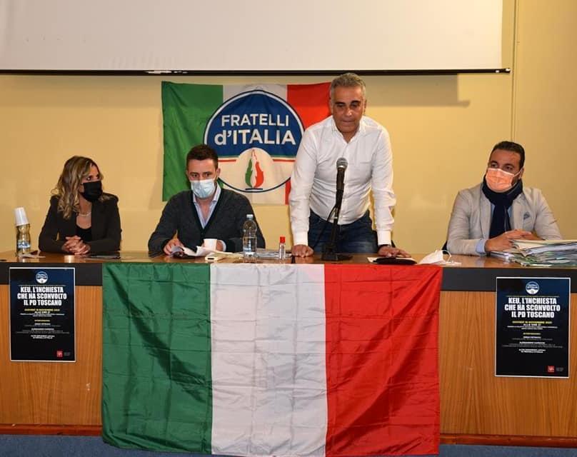 Incontro, ieri sera, alla biblioteca di Santa Croce sull’Arno organizzato dagli esponenti di Fratelli d’Italia riguardo l’inchiesta Keu. Presenti consiglieri regionali, Diego Petrucci e Alessandro Capecchi, ed esponenti locali, la consigliera comunale Benedetta Cicala ed il coordinatore comunale di Fdi Marco Rusconi.