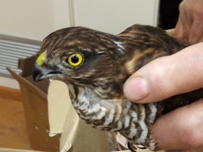 Questa volta è toccato ad uno sparviero, rapace che nidifica in ambienti forestali, ma che in inverno frequenta anche aree aperte.