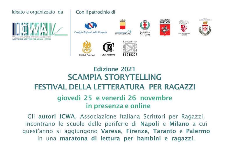 È nato per far conoscere e promuovere la lettura nelle scuole delle periferie. Ed è diventato, nel corso degli anni, una vera e propria officina di narrazione. Questo il biglietto da visita di “Scampia Storytelling”, il Festival di Letteratura per ragazzi giunto quest’anno all’8° edizione e organizzato da ICWA (Associazione Italiana Scrittori per Ragazzi), che si svolgerà giovedì 25 e venerdì 26 novembre coinvolgendo in tutta Italia una decina di Istituti comprensivi.