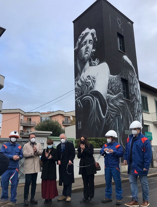 Empoli si illumina d’immenso e diventa il secondo cielo del Paradiso: in via della Repubblica è stata inaugurata questa mattina, sebbene sia già visibile da settimane, l’opera di street art sulla cabina elettrica “Santa Maria” di E-Distribuzione, la società del Gruppo Enel che gestisce la rete elettrica di media e bassa tensione, nell’ambito del progetto che l’azienda elettrica ha promosso in Italia per il settecentenario della morte di Dante Alighieri.